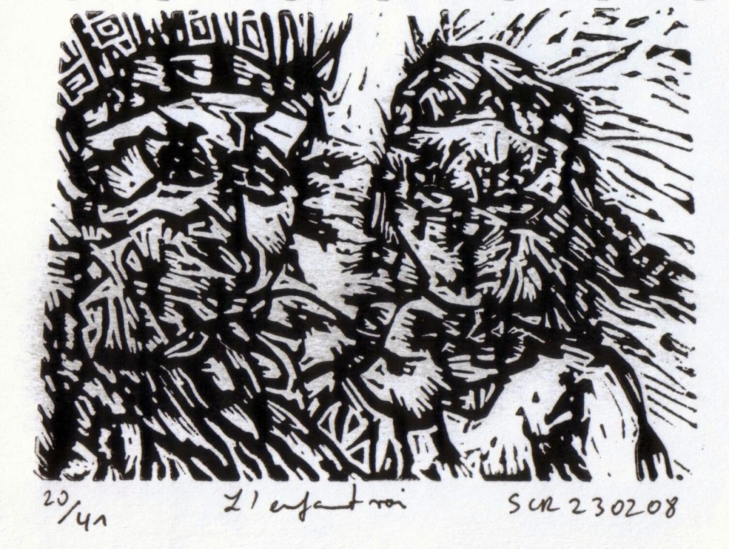 Peter Wawerzinek ICH DYL AN ICH, prose text, with six two-coloured and two single-coloured linocuts by Schoko Casana Rosso, Berlin, Corvinus, 2014, ISBN 978-3-942280-30-3.