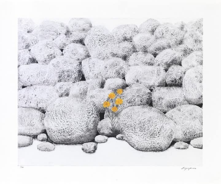 πάνω σὲ ἄσπρη πέτρα μὲ σφεντόνα.
